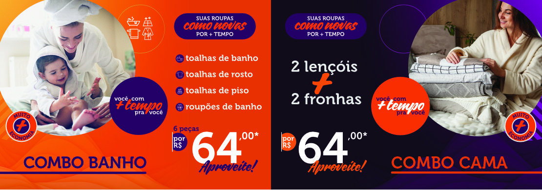 Combo Cama: lave até 4 peças, limitado a quantidade de 2 lençóis e 2 fronhas.