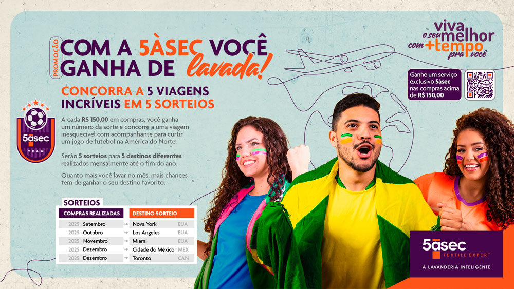 A cada R$ 150,00 em serviços no mesmo atendimento, você ganha 1 número da sorte para concorrer a uma viagem inesquecível com acompanhante